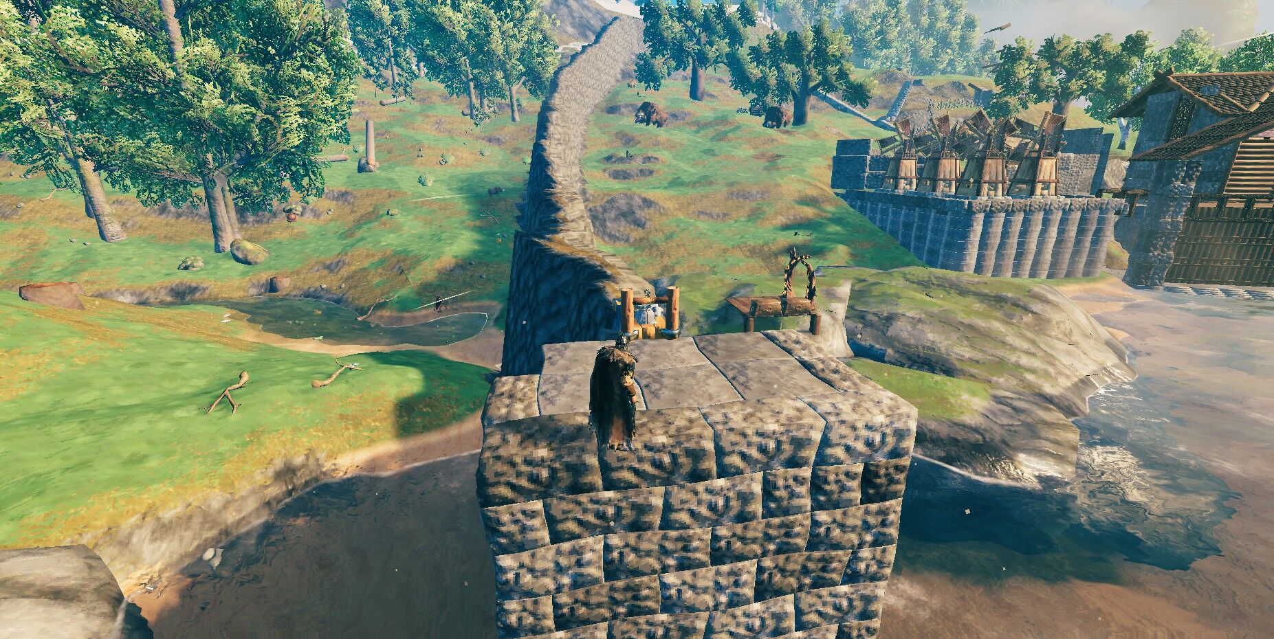 @aozorasystem外壁作り、はじめました。盛り土の壁を土台にするから、トロルに石材部分を壊されても侵入されない安心設計。…あーデザイン考えない建築は心安らぐんじゃー(ゲストハウス作成とん挫中🤣)#Valheim